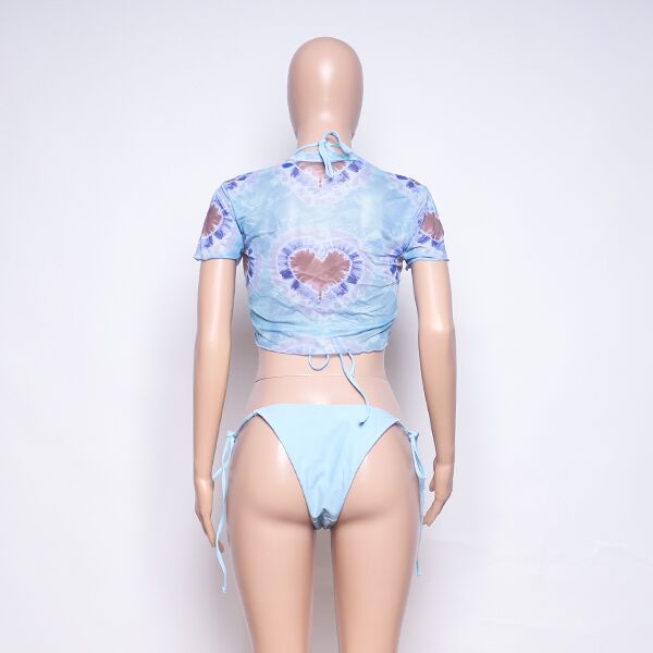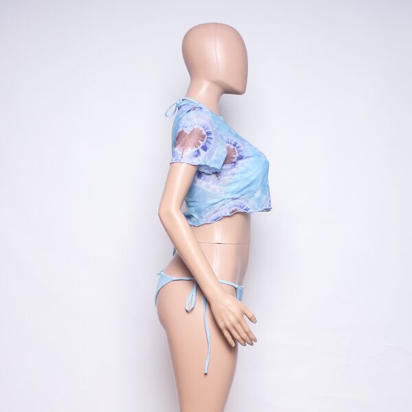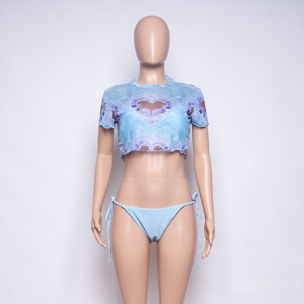 The highlight of this set is the short mesh T-shirt, which adds a layer of style and sophistication to your swimwear ensemble. Whether you’re lounging by the pool or taking a stroll on the beach, this three-piece bikini set with a T-shirt is sure to turn heads.