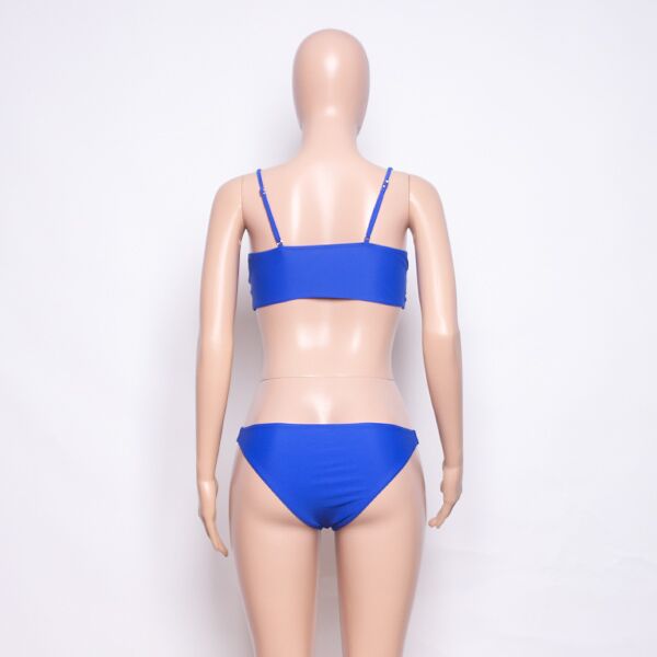 This pearl bikini set is a stunning choice for a glamorous beach look. The top is designed with a push-up style, embellished with pearls and scallop detailing for a luxurious touch. The bottom is a low rise, offering full coverage and comfort. The ensemble is completed with a scoop neck necklace design, adding an elegant finish. The blue color adds a refreshing and vibrant element to this sophisticated swimsuit, perfect for standing out by the pool or on the beach. Get in touch to access our complete design portfolio.