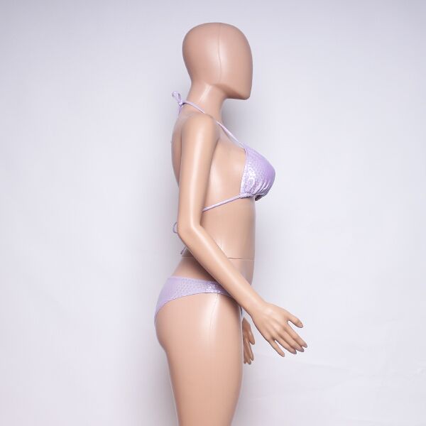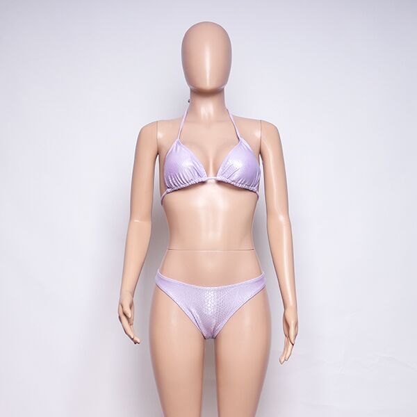 This plain bikini set is a timeless choice for your beach or poolside look. The top is a classic triangle style with a tie back and halter neck, offering a customizable and flattering fit. The bottom is mid-rise with natural coverage, providing a comfortable and modest silhouette. Perfect for soaking up the sun or swimming, this bikini set combines simplicity and elegance for a versatile swimwear option.