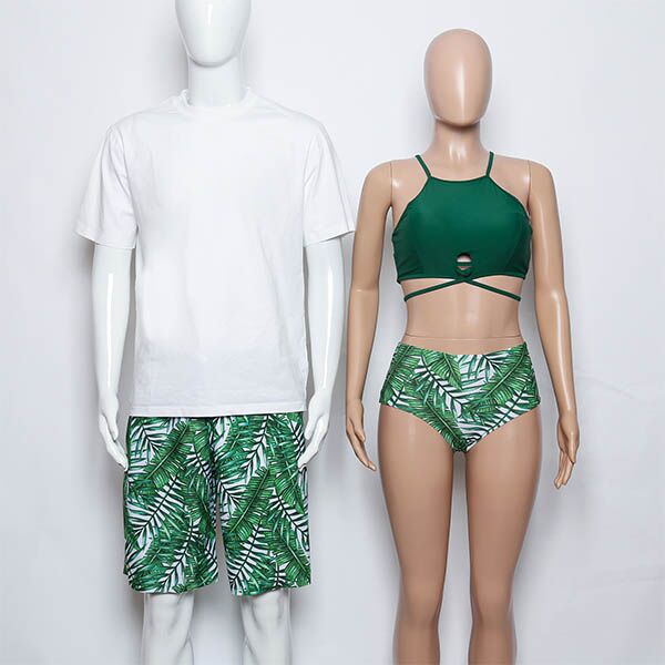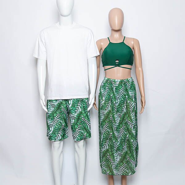 Featuring the same eye-catching green tropical print. These shorts are designed with a drawstring waist for a comfortable and adjustable fit, allowing you to enjoy your time in the sun with confidence and style.