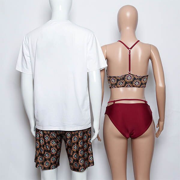 Elevate your beach style with our charming floral-themed matching swimsuits. Her two-piece bikini set exudes feminine allure with its vibrant floral print. The tank-style top features adjustable drawstrings and a chic cut-out design, adding a touch of allure. Paired with the red bottoms boasting cut-out detailing and full coverage.
