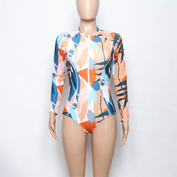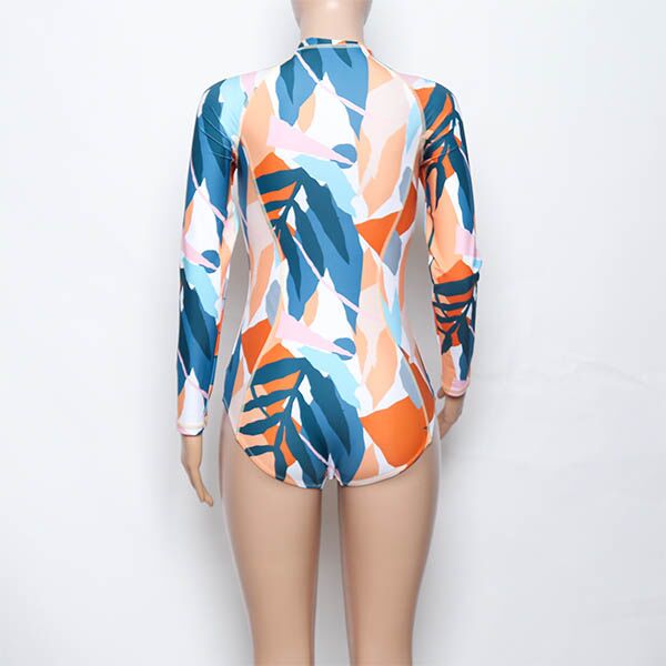 Featuring a vibrant tropical pattern, this surf suit not only looks great but also provides excellent sun protection. The long sleeves and zipper detail add a touch of style while ensuring a secure and comfortable fit.
