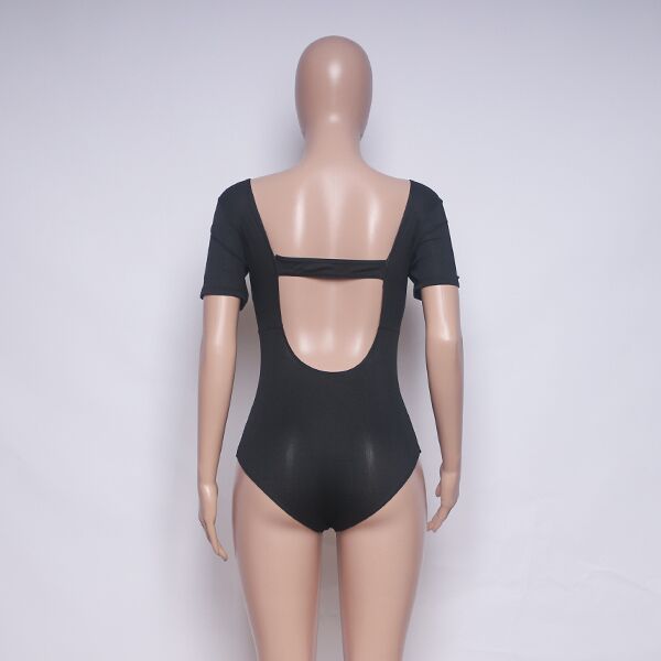 Crafted with a round neck and short sleeves, this swimsuit offers a modest yet fashionable look. The low back adds a touch of allure, making it perfect for lounging by the pool or strolling along the beach.