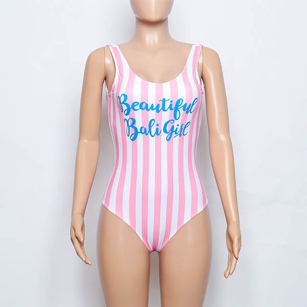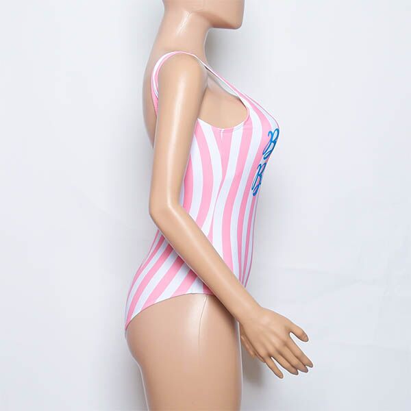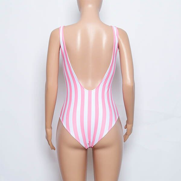 This stunning swimsuit features a stylish pink and white stripe pattern in portrait, adding a touch of elegance to your beach or poolside look. The strapless design and u-shape neckline create a chic silhouette, while the low back adds a hint of allure.