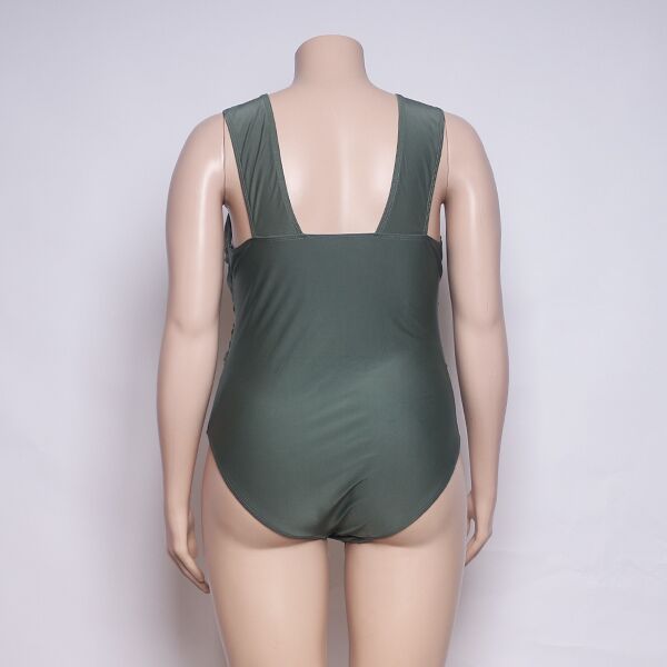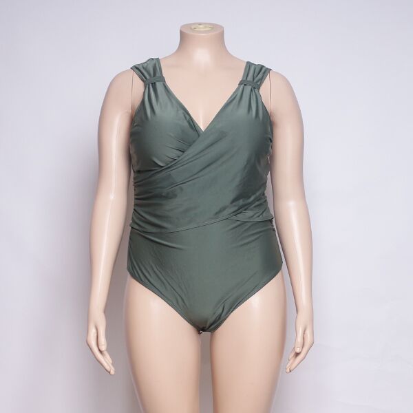 Introducing our collection of flattering plus size one piece swimsuits, designed to make you feel confident and stylish. This swimsuit features a sleek and classic plain design, perfect for versatile styling. The wide shoulder straps offer support and comfort, while the wrap detail adds a touch of elegance to your beach look. With its timeless design and flattering silhouette, this swimsuit is a must-have addition to your swimwear collection.